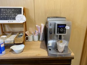 コーヒーマシンもあり、こちらはホット・アイスのコーヒーが100円でいただけます。
